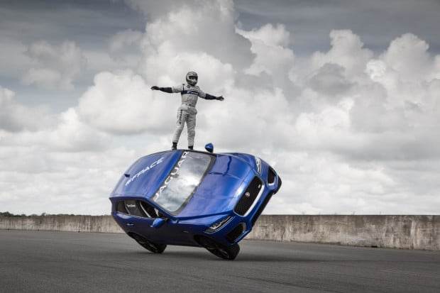 Jaguar F-Pace Thrills Goodwood with Dramatic Two-Wheeled Ride